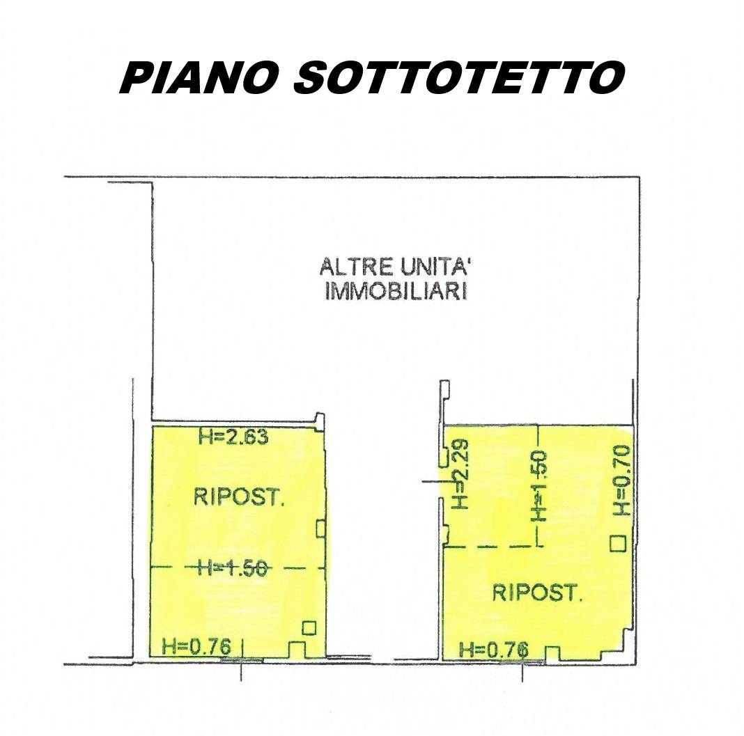 2 Soffitte; (corridoio comune centrale con giroscale di collegamento ai piani, che scollega i locali i quali risultano collegabili terra-tetto solo verticalmente);