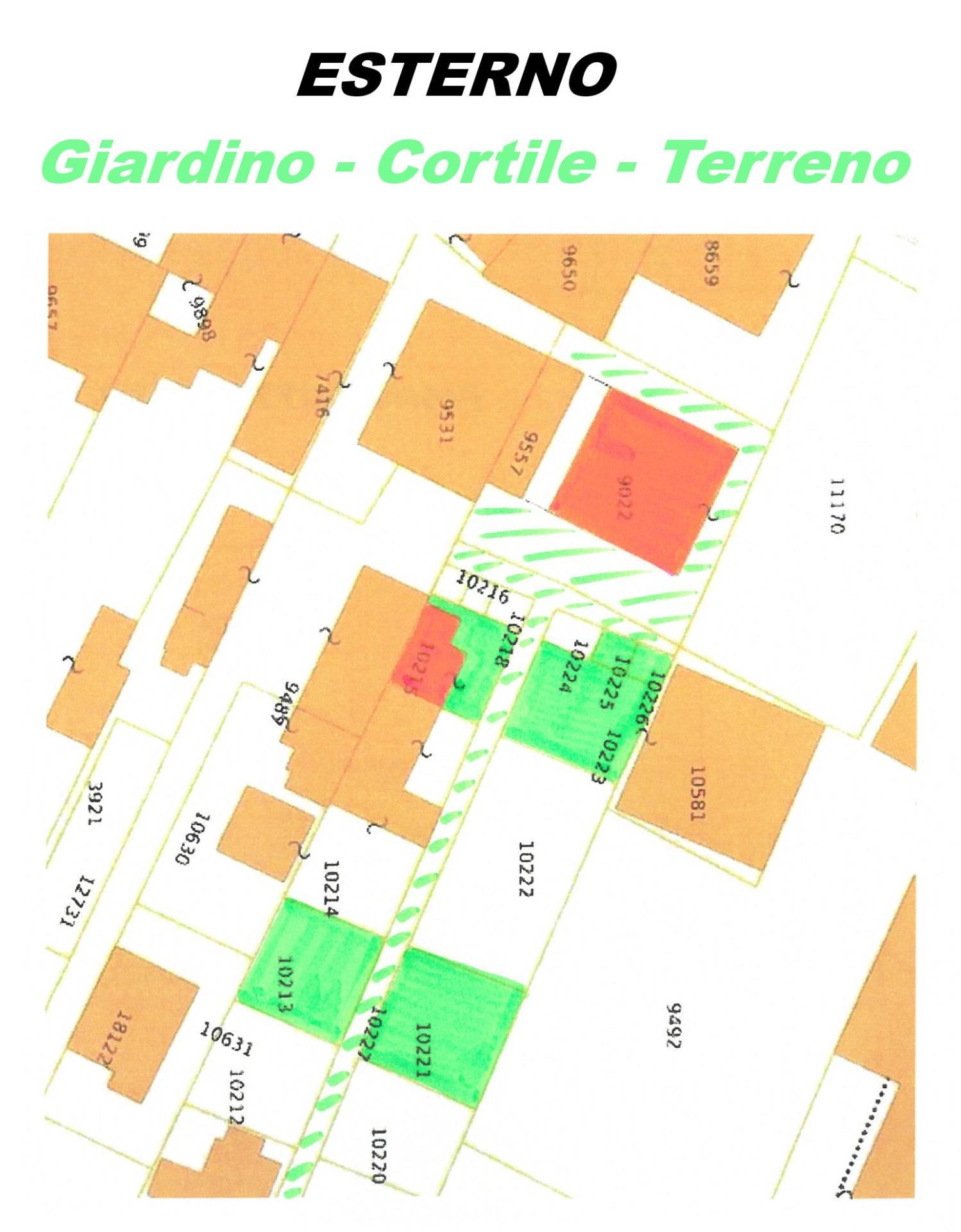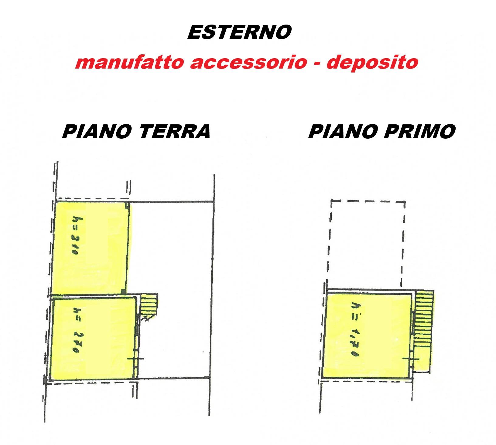 Ampio giardino - cortile - terreno di Tot. circa mq 275 con manufatto accessorio deposito su 2 livelli di mq 55 ca. da ristrutturare.
