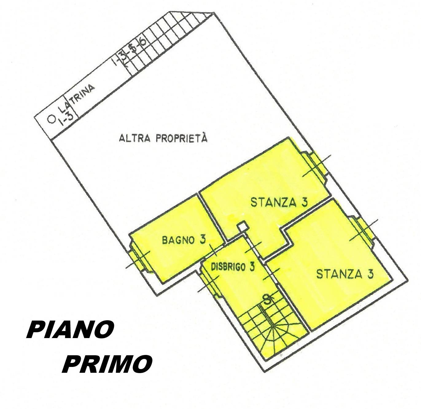 2 stanze e altro bagno finestrato; scala che collega i piani;