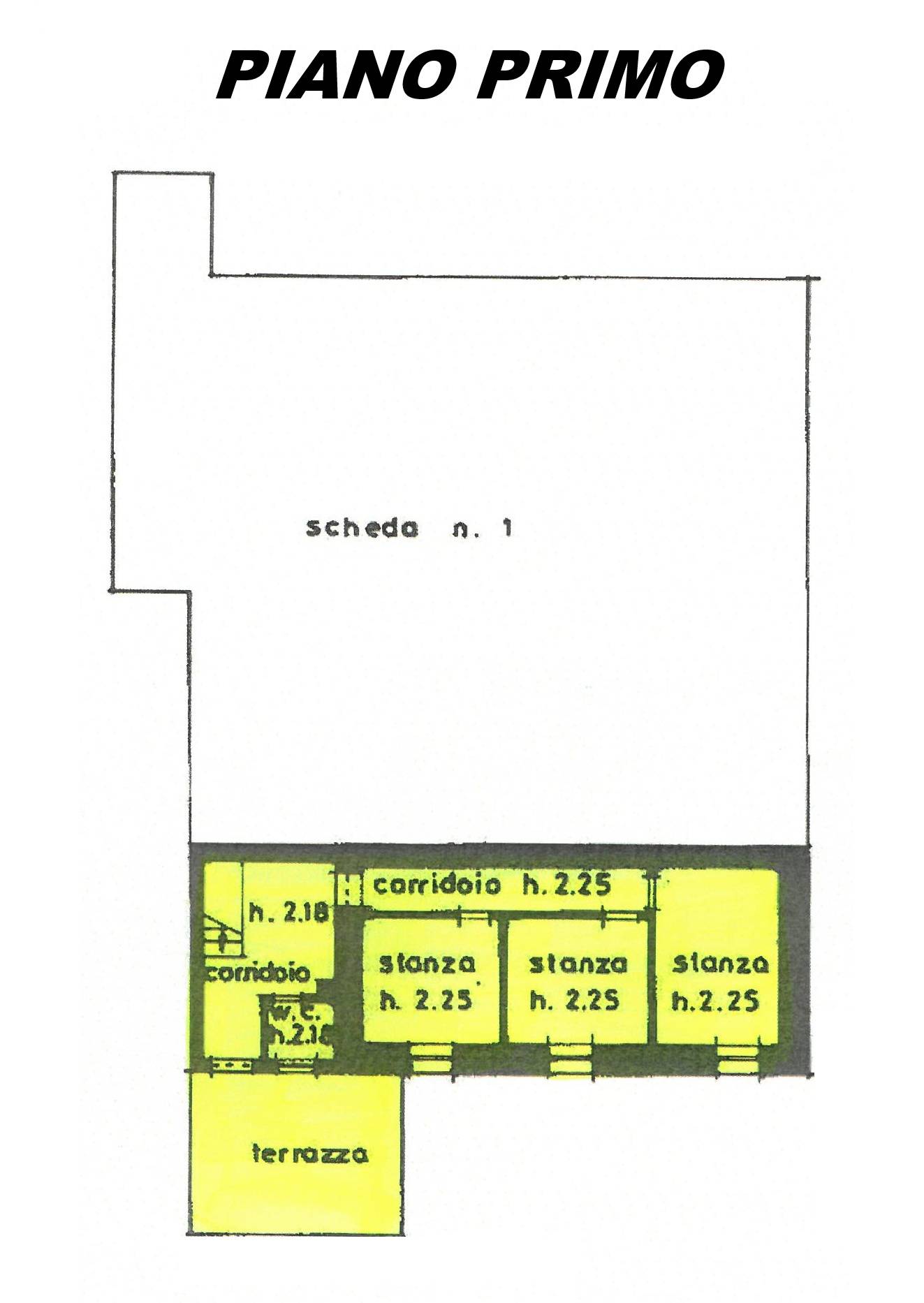 vano-disbrigo con uscita su terrazzo, corridoio, 3 stanze, bagnetto; scala retrattile per accesso al sottotetto.